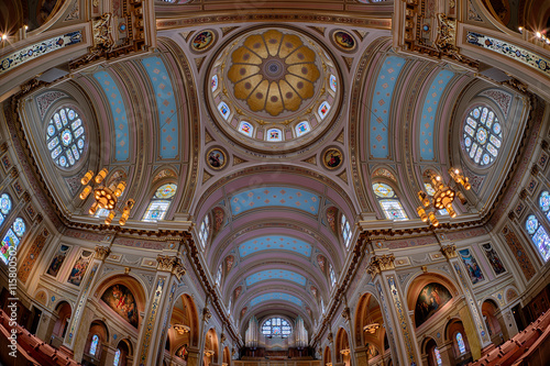 arch, architecture, blue, brown, cathedral, ceiling, chapels, chicago, church, column, dome, fisheye, glasses, horizontal, illinois, illuminated, indoor, inner, inside, interior, nobody, organ, pipe, religion, rotunda, stained-glass, us, wide, window