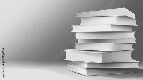 Stack of blank books on a gray background.