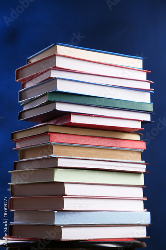 Stack of books on blackboard background