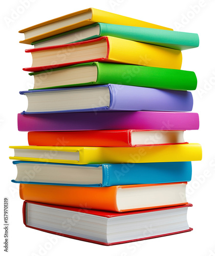 Stack of colorful books isolated on white background transparent PNG clipart.