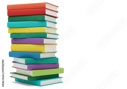 Stack of colorful books on a white background, education and reading concept