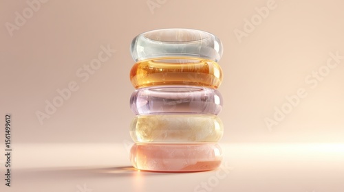 Stack of Colorful Glass Rings Pastel Tones Abstract Background Design Element