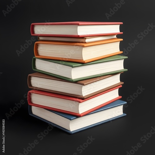 Stack of Colorful Hardcover Books on Dark Background