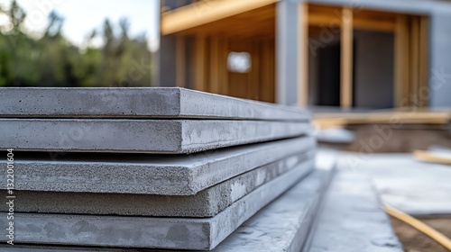 slab, concrete, stack, stacking, building, constructing, construction, laying, foundation, framework, wood, timbering, house, home, property, real estate, residential, site, outdoors, day, grey, grayish, closeup, blur, tree, backyard, home improvement, renovation, development, investment, material, component, ground, preparing, footed, structure, surface, layer, support