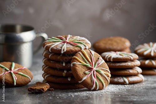 gingerbread, cookie, stack, colourful, icing, grey, counter, food, sweet, dessert, treat, baked, delicious, tasty, closeup, studio, shot, still life, dark, moody, light, shadow, texture, rustic, simple, elegant, minimalist, copy space, advertisement, product, photo, food photography