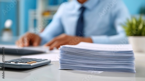 tax collector, tax, man, stack, office, document, with, calculating machine, thick, paperwork, desk, corporate, paper, pile, accountant, accounting, finance, financial, inspecting, invoice, receipt, report, form, workspace, professional, attaching, businessman, clerk, record, filing, administration, organisation, calculation, budgeting, analysis, number, blurred, sharpened, contract, stationery, desktop