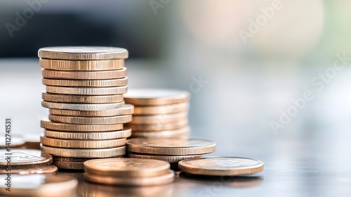 Stack of Shiny Coins on a Table with a Blurred Background : Generative AI