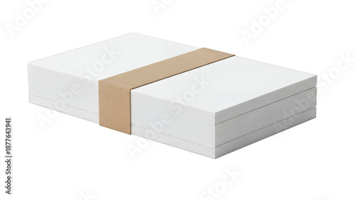 Stack white paper with brown band, isolated on transparent background, side perspective clear HD! 3D