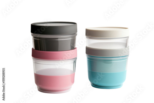 Stackable beverage container, space-efficient for kitchen storage and organization isolated on transparent and white background.PNG image