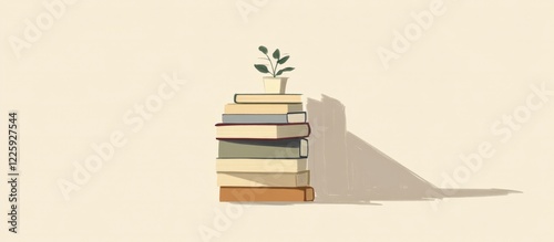 Stacked Books with Plant, Minimalist Home Decor, Calm Atmosphere