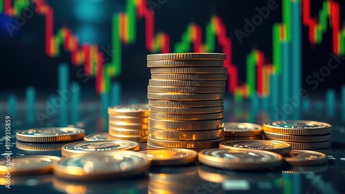 Stacked Money Coins with Trading Graph - Financial Investment Background