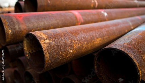 Stacked rusty metal pipes
