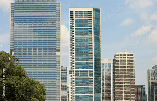 skyscraper, building, tower, tower, tall, highrise, city, urban, downtown, sky, blue skies, cloud, daytime, sunny, bright, tree, chicago, illinois