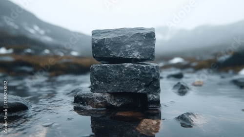 stone, stacked, rock, mountain, stream, water, nature, landscape, zen, balance, calm, minimalist, still, sharpened, composition, photo, outdoors, weather, fog, mist, mountainous, cold, grey, dark, grey, wet, beauty, serenity, peace, harmony, calmness, zenith, stillness, abstract, geometry, equilibrium, elemental, raw, rough, granite, river, creek, alpine, snow, moss