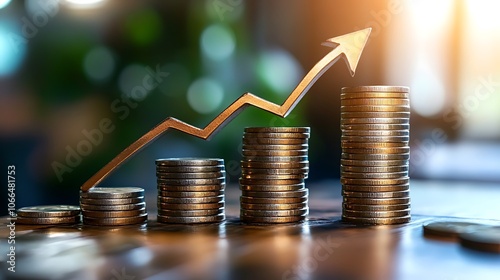 Stacks of coins growing in height with an arrow graph