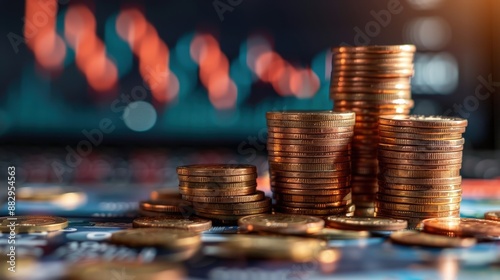 Stacks of Coins with Financial Graph in Background Representing Investment and Economic Growth