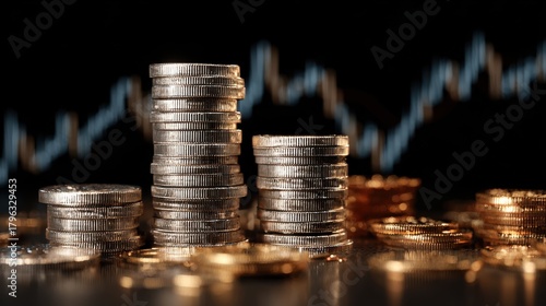 coin, investment, money, economy, graph, finance, business, growth, chart, wealth, digital, profit, financial, stack, success, market, currency, datum, technology, stock, trading, value, analysis, gold, capital, progress, saving, banking, future, trend, background, strategy, asset, abstract, exchange, increase, earning, income, concept, prosperity, innovation, trade, blue, statistic, upward, modern, cash, revenue, commerce