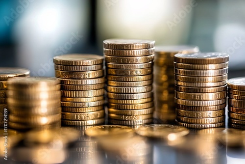 coin, stack, money, gold, silver, finance, investment, growth, savings, wealth, economy, business, profit, value, accumulation, currency, resource, financial, chart, datum, visual, graphic, column, row, ascending, metallic, circular, round, closeup, blurred, background, light, pattern, trend, increase, success