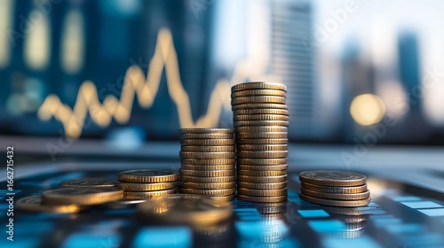 coin, stack, gold, financial, chart, growth, investment, money, business, success, profit, economy, wealth, savings, trading, market, stock, increase, graph, datum, number, technology, table, desktop, digital, blur, city, light, evening, progress, opportunity, earning, money-making, development, rise, accumulation, resource, resourcefulness, worth