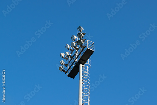 sky, light, blue, lamp, electricity, metal, wind, power, stadium, tower, pole, street, energy, lighting, weather, electric, city, post, equipment, weather vane, steel, antennae, bulb, old