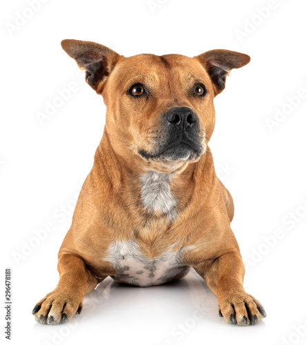 dog, puppy, pitbull, terrier, animal, brown, pet, purebred, studio, white background, isolated