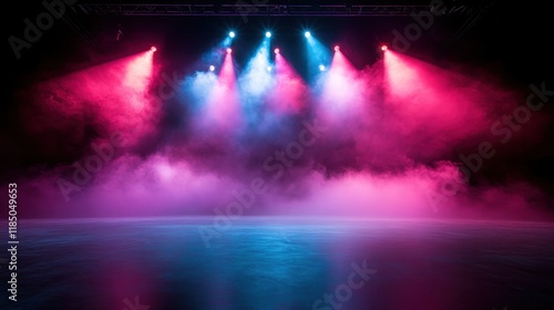 stage lights, colorful fog, vibrant pink and purple hues, dramatic lighting, concert atmosphere, misty effect, ethereal glow, smoke machine, theatrical backdrop, dynamic illumination, vivid colors, at