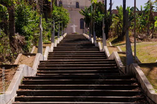 staircase in the santa olimpia neighborhood, in piracicaba, with the Maria Estrela da evangelização Parish in the background
