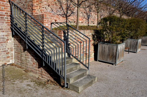 brick, staircase, wall, curved, drainage, concrete, vinery, boxwood, terrace, flower, pot, fence, bent, bench, building, burnt, bush, cement, clay, furniture, garden, gardening, granite, gravel, grey, lamp, landscape, landscaping, ornamental, park, path, red, romantic, row, slope, smooth, spa, square, steel, step, style, sunny, town, wide