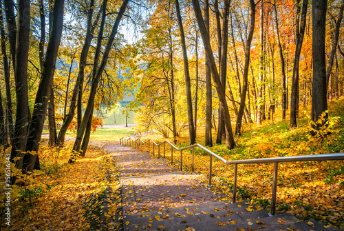 Stairs down in the autumn park Tsaritsyno in Moscow
