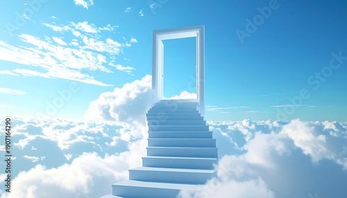 staircase, heaven, cloud, sky, doorway, stair, dream, surreal, hope, afterlife, spiritual, ascension, divine, gateway, portal, white, blue, fluffy, aethereal, peaceful, tranquil, serene, escape, journey, destination, future, opportunity, success, achievement, inspiration, motivation, goal, vision, fantasy, imagination, concept, symbol, metaphor, religious, belief, faith, god, paradise, heavenly, celestial, up high, high, upward, climb