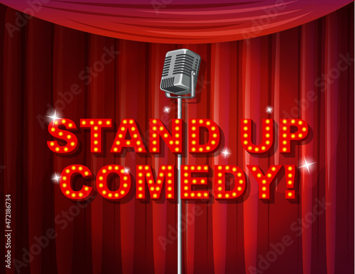 Stand up comedy banner with vintage microphone