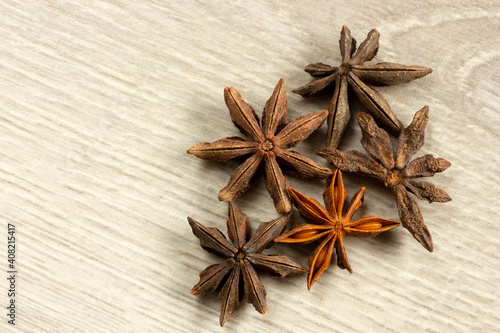 Star anise exotic spice on a wooden table