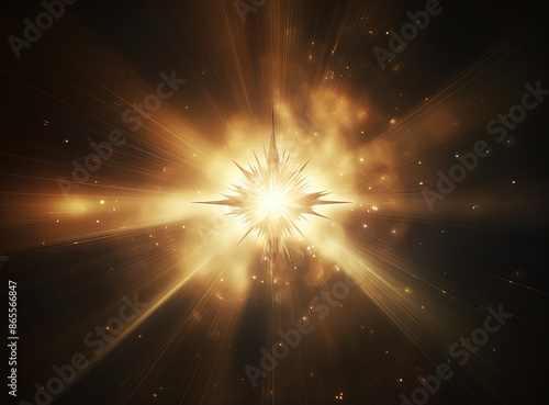 Star flare with yellow rays and beams on dark background