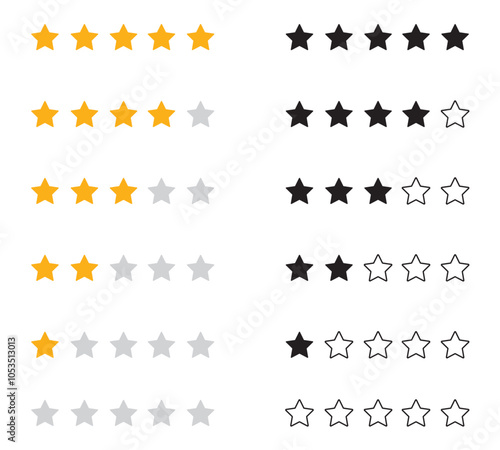 Star rating icon set in gold and black. Vector illustration.