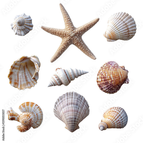 Starfish & Seashells on transparent background