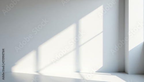 Stark white wall, deep shadows cast by unseen object , contrast, white