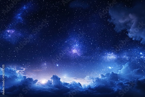 Starry night sky with clouds.. Panorama. Universe filled with stars, nebula and galaxy,. Elements of this image furnished , ai