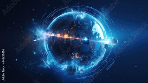Stars, planets, fantasy landscapes of the future. Futuristic space sci-fi abstract background Sci-fi landscape with planets, neon lights, cool planets, 3D render.