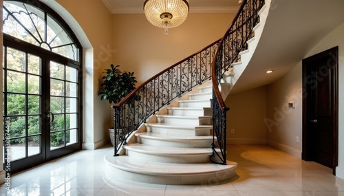 Statement staircase with wrought iron & crystal accents, residential, property