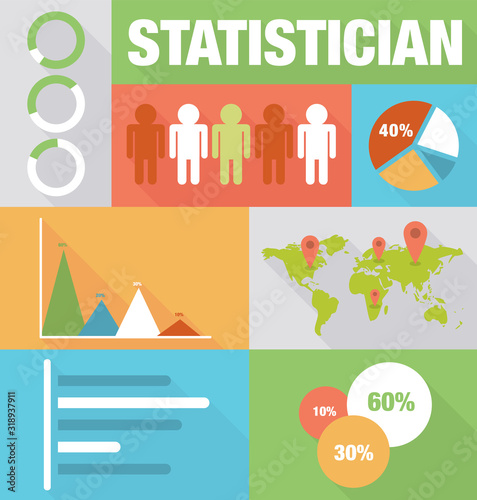 Statistician vector flat icon set
