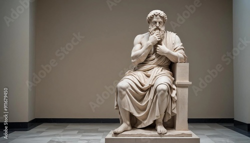 statue of a Greek philosopher in contemplation, at historical museum