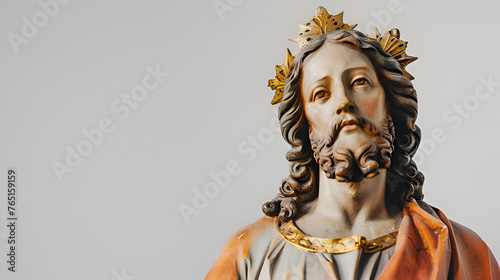 Statue of 'Jesus christ of Nazareth' on white background copy space