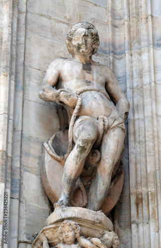 Statue of Saint on the facade of the Milan Cathedral, Duomo di Santa Maria Nascente, Milan, Lombardy, Italy