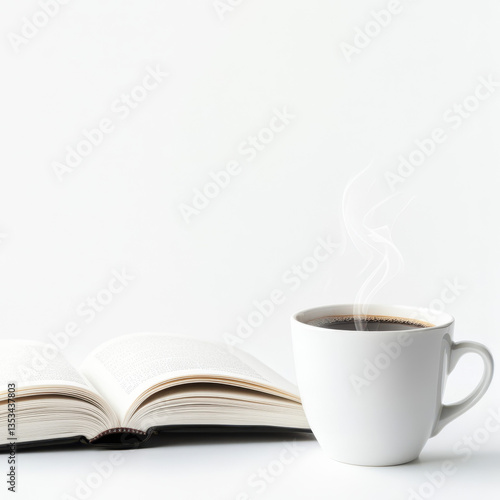 hot drink, cup, book, open, steaming, white, background, reading, relaxation, beverage, literature, study, calm, peaceful, morning, aroma, hot, drink, minimal, simplicity, lifestyle, leisure, cosy, break, refreshment