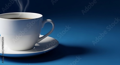 Steaming Coffee in White Cup on Blue Background