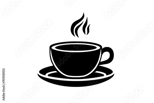black, hot drink, steaming, frothy, surface, cup, saucer, hot, drink, beverage, dark, aromatic, caffeine, plain, simple, classic, morning, fresh, brewed, warm, elegant, closeup, illustration, art, vector, graphic