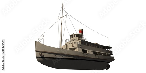 steamship, steamer, steamboat, ship, three-dimensional, illustration, boat, motorboat, cruise, water, isolated, white, background, ocean, port, protection, render, sea, shipping, surveillance, transport, transportation, vessel, marin, rendering