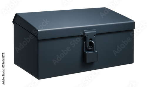 Steel tool storage box with powder coating and padlock eye for construction sites.