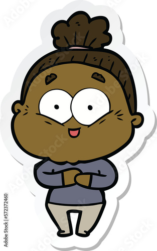 sticker of a cartoon happy old woman