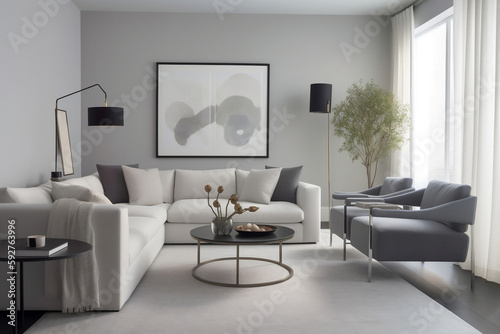 Stilvolles und modernes Wohnzimmer mit minimalistischem Design, Generative AI